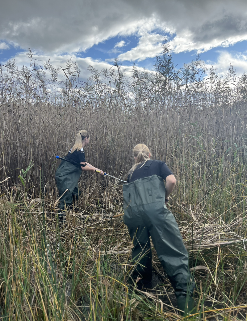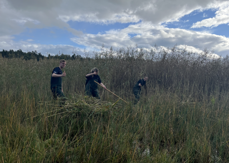 Hem Aktuellt Elever klipper vass för livet under ytan Elever klipper vass för livet under ytan Tillsammans med Skärgårdsstiftelsens vattenförvaltare Cicci deltog elever från Midsommarkransens gymnasium i praktiskt naturvårdsarbete – vassklippning i en kustnära vik. Arbetet är en del av stiftelsens satsning på att stärka de så kallade blå bårderna, de grunda strandnära miljöerna som är avgörande för livet i skärgården.Vass är en viktig del av kustekosystemet, men när den breder ut sig för mycket skuggas andra växter bort och fiskar som gädda och abborre får svårt att leka. Genom att klippa vassen öppnas vattnet upp och variationen ökar – något som gynnar både fisk, smådjur och fågel.Klipps vassen medan den fortfarande är grön följer näringen med upp till land istället för att återgå till vattnet. Det bidrar till att minska övergödningen och förbättrar livsmiljöerna i de blå bårderna, där ålgräs, tång och fisklek utgör grunden för skärgårdens biologiska mångfald.Att låta elever delta i arbetet skapar förståelse för hur viktiga dessa kustnära miljöer är – och visar hur naturvård och lärande kan gå hand i hand för att ge livet under ytan mer utrymme. Stort tack till Midsommarkransens gymnasium för att ni bidrog till ett mer hållbart och hälsosamt liv under ytan! Visa alla +2 Visa fler 1 / 5 2 / 5 3 / 5 4 / 5 5 / 5 Föregående Nästa StängX